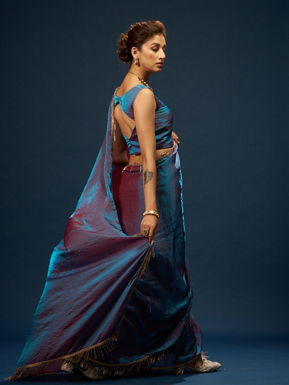 Complete with a matching unstitched blouse piece, this ensemble allows you to tailor your look exactly how you envision it—classic, trendy, or something uniquely you.
